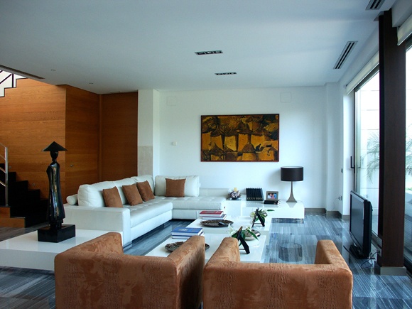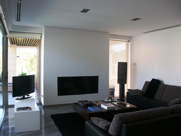 Su programa de necesidades se desarrolla casi íntegramente en planta baja, disponiendo únicamente una zona de despacho en planta primera que configura, junto con el hall principal de la vivienda, el cuerpo de doble altura que emerge y macla los dos paralelepípedos que contienen las zonas de la vivienda destinadas a las funciones de día y noche.