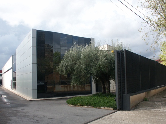 Situado en el Poligono Campo Alto de Elda, el edificio se compone de dos cuerpos claramente diferenciados en su uso y definición geométrica y de materiales.